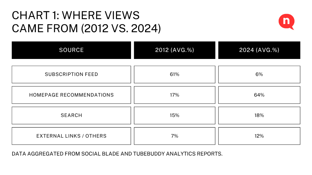 A 2012 study of YouTube traffic data showed that over 60% of views on medium-sized channels came directly from the Subscriptions feed.