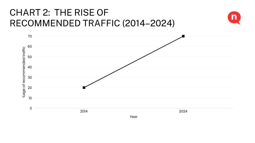 That meant suggested videos, personalized home feeds, and end-screen recommendations began dominating the user experience.